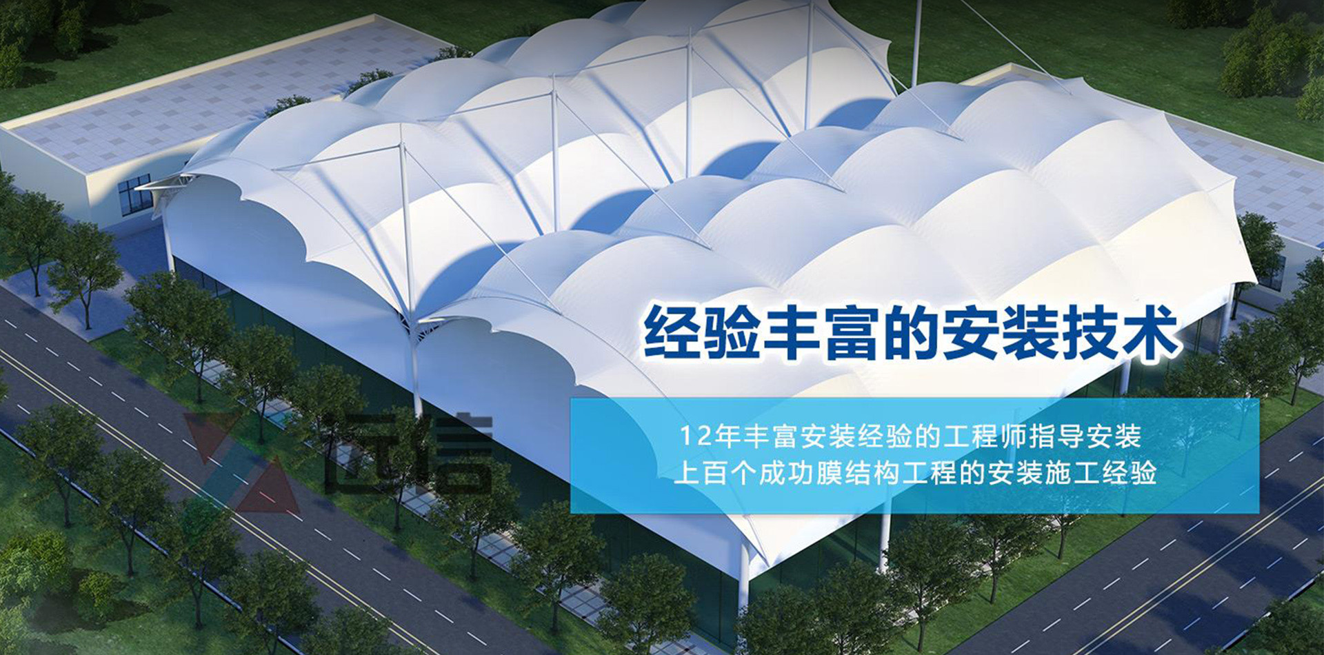 3.從結構設計上降低膜材安裝難度選用膜材均為國產或進口優(yōu)質膜材料,高強拉力,優(yōu)質抵抗老化涂層